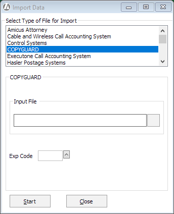 For Select Type of File for Import, select COPYGUARD.