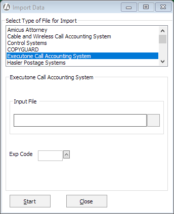 For Select Type of File for Import, select Executone Call Accounting System.